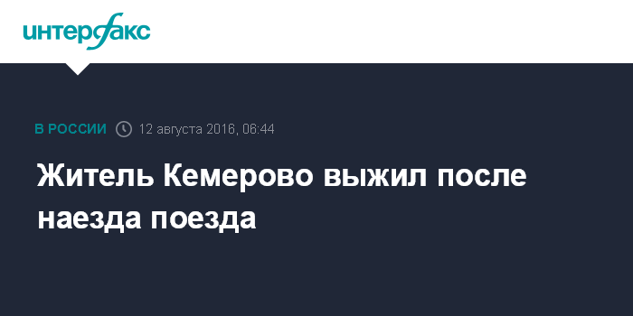 Москва. 12 августа. INTERFAX.RU - Сорокалетний мужчина получил компрессионный перелом позвоночника в результате наезда поезда в Кировском районе Кемерово, сообщили агентству "Интерфакс" в пресс-службе западно-сибирского СУ на транспорте СКР в пятницу.