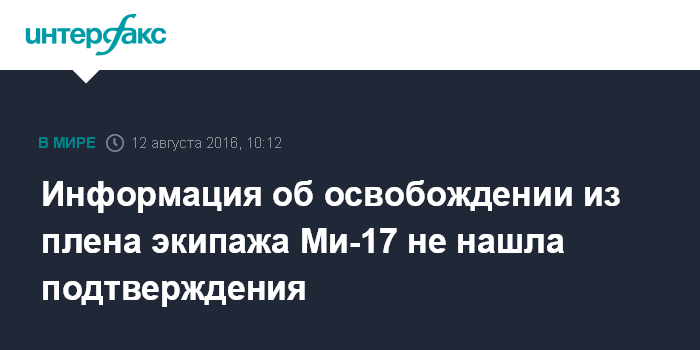 Информация об освобождении из плена экипажа Ми-17 не нашла подтверждения