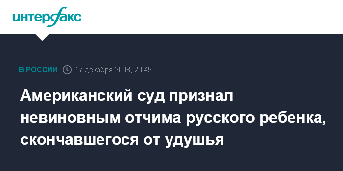 Американский суд признал невиновным отчима русского ребенка, скончавшегося от удушья