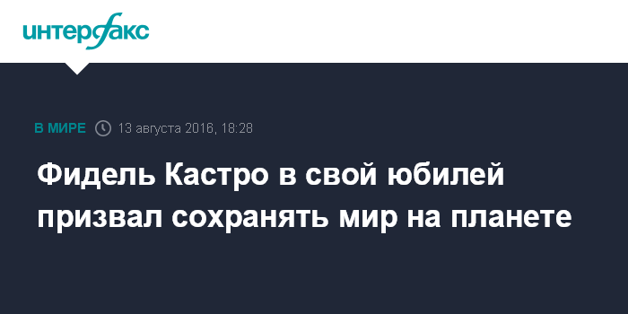 Москва. 13 августа. INTERFAX.RU - Бывший кубинский лидер Фидель Кастро, отмечающий в субботу 90-летие, призвал приложить усилия для сохранения мира на нашей планете.