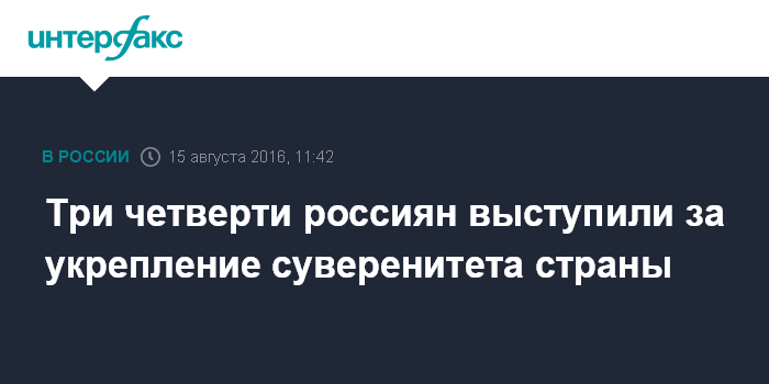 Политика властей должна быть ориентирована, в первую очередь, на укрепление суверенитета, считают 72% россиян. Лишь каждый пятый (20%) высказывается "за союз с ведущими странами Запада, вхождение России в современную западную цивилизацию".