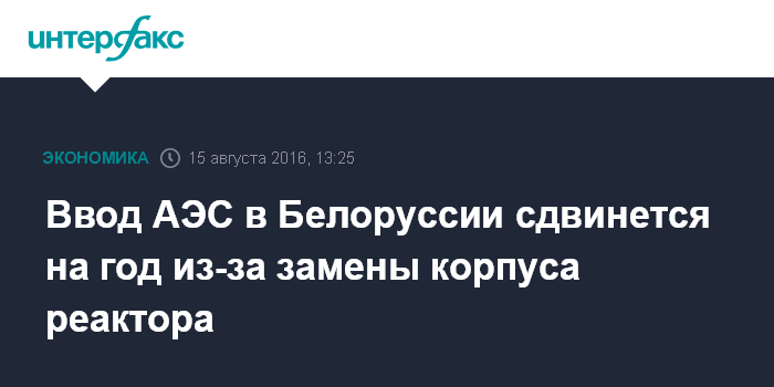 Ввод АЭС в Белоруссии сдвинется на год из-за замены корпуса реактора
