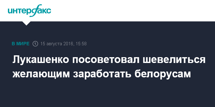 Москва. 15 августа. INTERFAX.RU - Президент Александр Лукашенко считает, что в Белоруссии только ленивый не может заработать, и советует белорусам немного шевелиться.