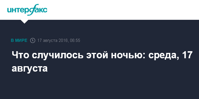 Москва. 17 августа. INTERFAX.RU - Краткая сводка событий, произошедших к утру: