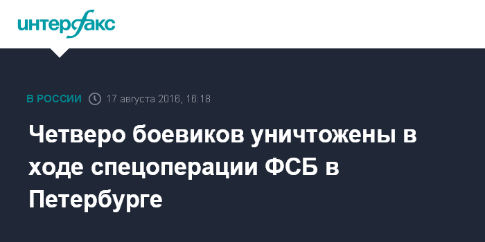 Четверо боевиков уничтожены в ходе спецоперации ФСБ в Петербурге