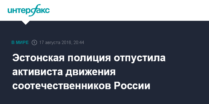 Москва. 17 августа. INTERFAX.RU - Полиция Эстонии освободила члена Координационного совета российских соотечественников в республике, руководителя независимых информационных порталов Baltija и Baltnews Александра Корнилова.