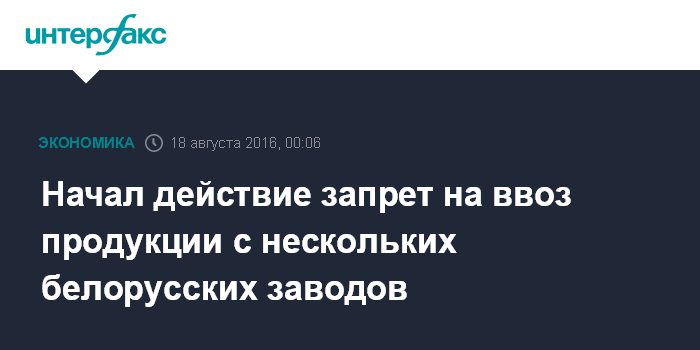 Начал действие запрет на ввоз продукции с нескольких белорусских заводов