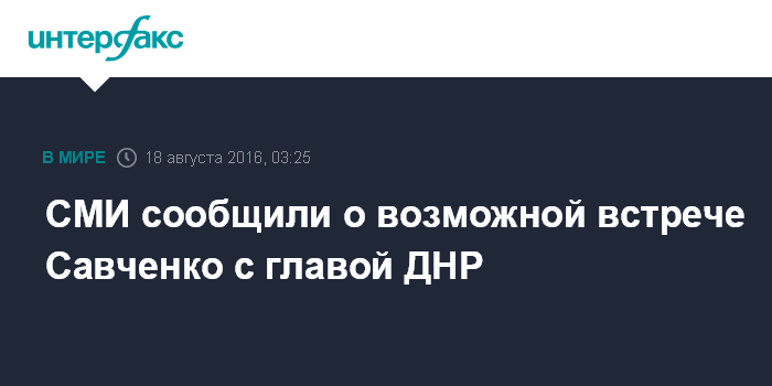 Москва. 18 августа. INTERFAX.RU - Встреча народного депутата Украины Надежды Савченко с лидерами самопровозглашенной Донецкой народной республики (ДНР) Александром Захарченко и самопровозглашенной Луганской народной республики (ЛНР) Игорем Плотницким может состояться в ближайшие два месяца, сообщила газета "Известия" со ссылкой на источник в ДНР.