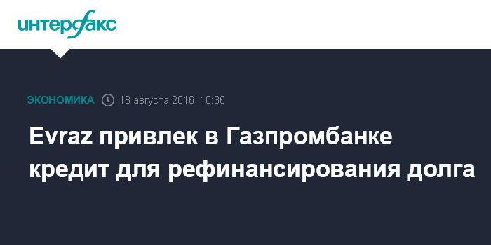 Москва. 18 августа. INTERFAX.RU - Evraz привлек в Газпромбанке 18 млрд рублей и 180 млн евро для рефинансирования существующей кредитной линии, сообщила меткомпания.