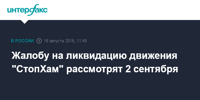 Жалобу на ликвидацию движения "СтопХам" рассмотрят 2 сентября