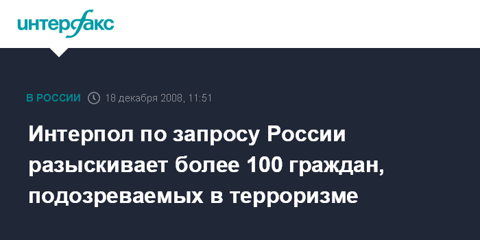 Интерпол по запросу России разыскивает более 100 граждан, подозреваемых в терроризме
