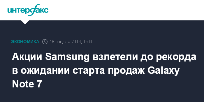 Акции Samsung взлетели до рекорда в ожидании старта продаж Galaxy Note 7