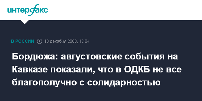 "В феврале состоится заседание министров иностранных дел ОДКБ, где будут решаться шаги по повышению солидарности внутри ОДКБ", - сказал журналистам в четверг генсек Организации Николай Бордюжа. По его словам, необходимость в проведении таких консультаций была вызвана крайне скупой поддержкой действий России другими членами ОДКБ во время августовских событий на Кавказе.