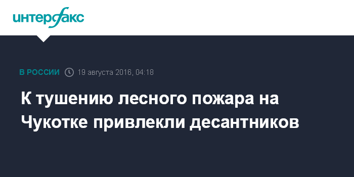 Москва. 19 августа. INTERFAX.RU - Десантная пожарная служба Чукотки локализовала лесной пожар, который действует в 26 км от села Марково и приступила к тушению с использованием вертолета Robinson R-44. Пресс-служба аппарата губернатора и правительства региона сообщает, что также пожарные десантники ликвидировали природный пожар на оленьих пастбищах в более чем 40 км от села Канчалан, площадь, пройденная огнем, составляет 356 га. На тушении были задействованы 13 специалистов службы. Пока на территории лесного фонда Чукотки наблюдается 1-3 класс пожарной опасности по условиям погоды.