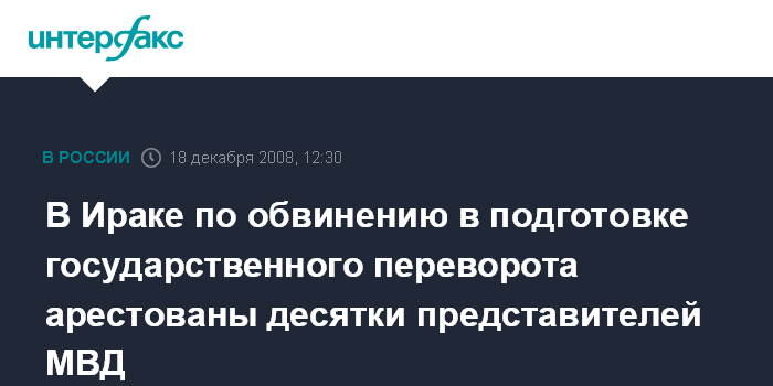 В министерстве внутренних дел отметили наличие неопровержимых доказательств связей заговорщиков с группировкой "Аль-Авда" - наследницей партии "Баас", запрещенной в 2003 году. В МВД Ирака также не исключили возможности новых арестов, отметила Times.