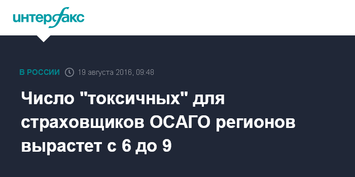 Число "токсичных" для страховщиков ОСАГО регионов вырастет с 6 до 9