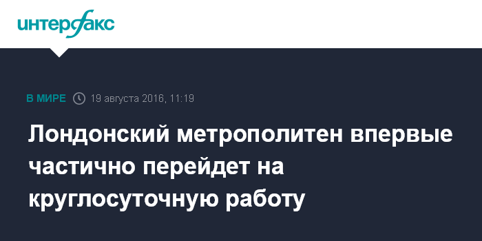 Москва. 19 августа. INTERFAX.RU - Две линии метрополитена Лондона впервые начнут работать в круглосуточном режиме, сообщают в пятницу британские СМИ.