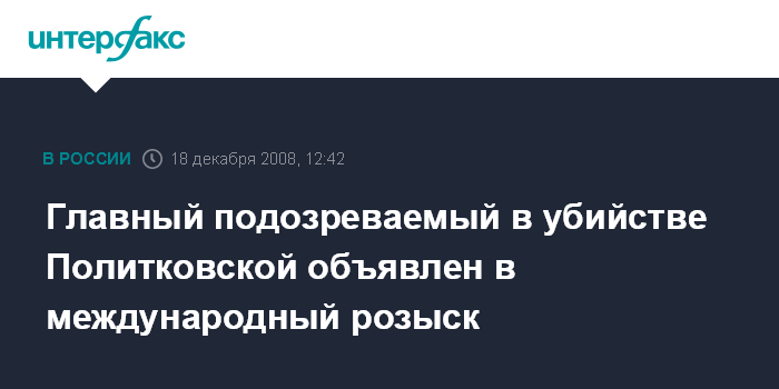 "Фигурант по делу Анны Политковской (Рустам Махмудов) объявлен в международный розыск с целью ареста и последующей выдачи России, но какой-либо официальной информации, прошедшей по каналам Интерпола, мы пока не располагаем", - сообщил в четверг на пресс-конференции в центральном офисе "Интерфакса" в Москве глава российского НЦБ Интерпола Тимур Лахонин.