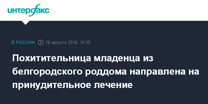 Похитительница младенца из белгородского роддома направлена на принудительное лечение