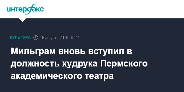 Ранее сообщалось, что 15 июля министерство культуры Пермского края издало приказ об увольнении Мильграма. По данным ведомства, худрук предпринял действия для срыва гастролей театра "Сатирикон" в Пермском крае, в том числе на сцене "Театра-Театра".