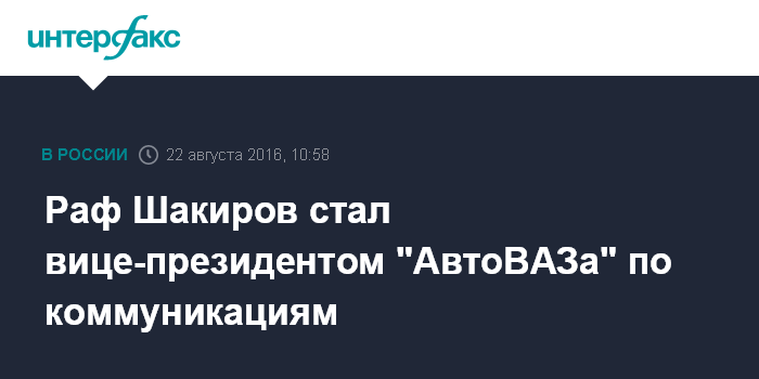 "Я уверен, что богатый опыт Шакирова в руководстве ведущими СМИ и его высокие профессиональные компетенции и связи обеспечат сильную поддержку брендам Lada и "АвтоВАЗ" со стороны российских и иностранных СМИ", - говорится в сообщении со ссылкой на президента компании Николя Мора.