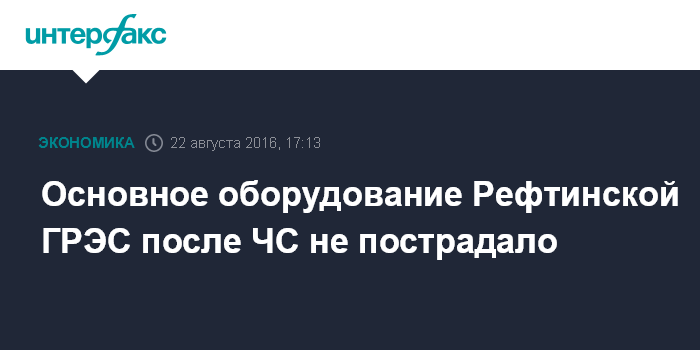 Москва. 22 августа. INTERFAX.RU - Энергоблоки Рефтинской ГРЭС в результате произошедшей на станции в понедельник чрезвычайной ситуации не пострадали, сообщили "Интерфаксу" в компании.