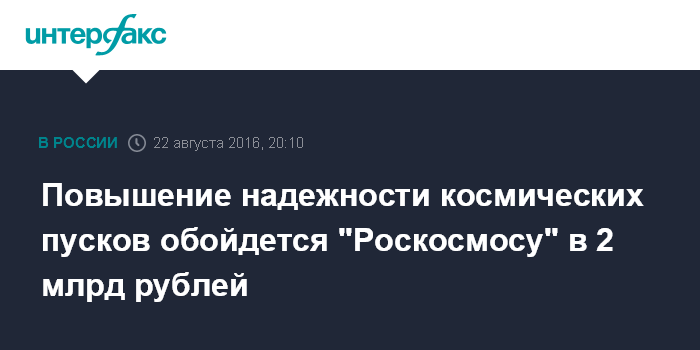 Повышение надежности космических пусков обойдется "Роскосмосу" в 2 млрд рублей