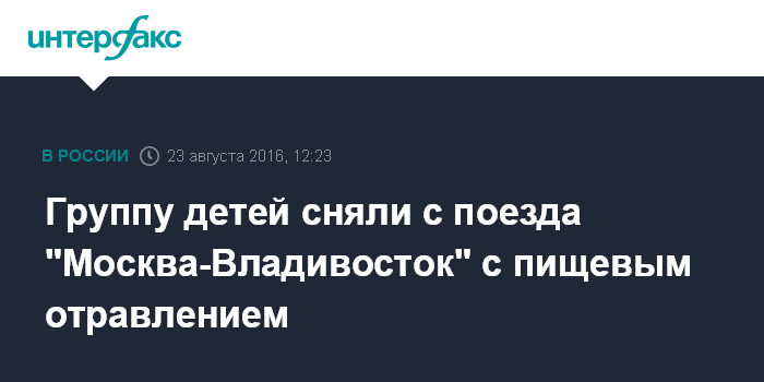 По данным следствия, группа детей в сопровождении двух взрослых следовала поездом сообщением "Москва-Владивосток". Утром 22 августа у детей начали проявляться симптомы пищевого отравления. Бригады скорой медицинской помощи госпитализировали детей. В настоящее время их состояние оценивается медиками как удовлетворительное.