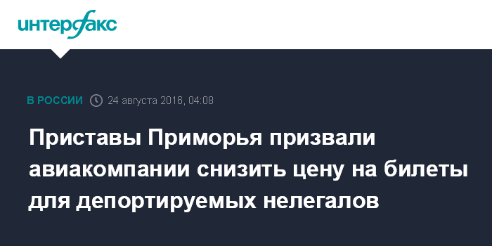 Москва. 24 августа. INTERFAX.RU - Управление Федеральной службы судебных приставов по Приморскому краю просит авиакомпании снизить стоимость перелета для граждан Узбекистана, которые по судебным решениям должны быть выдворены из РФ.