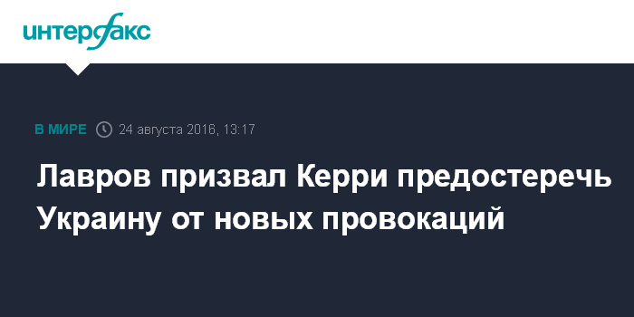 Москва. 24 августа. INTERFAX.RU - Глава МИД РФ Сергей Лавров в ходе телефонного разговора с госсекретарем США Джоном Керри призвал Вашингтон предостеречь Украину от новых провокаций и побудить к диалогу с Донбассом.