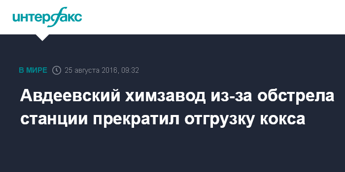 Москва. 25 августа. INTERFAX.RU - Авдеевский коксохимический завод (АКХ), крупнейшее в Европе коксохимическое предприятие, входящее в группу "Метинвест", вынужден снижать производство из-за обстрела Авдеевки в ночь с 23 на 24 августа и попадания снарядов в железнодорожную станцию, что привело к остановке доставки коксующихся углей и отгрузке кокса.