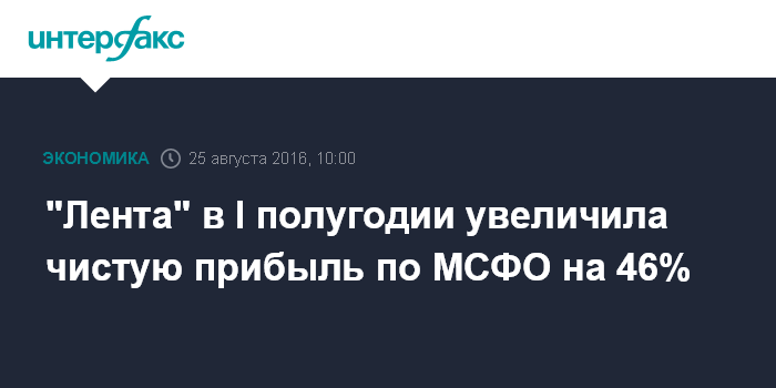 Москва. 25 августа. INTERFAX.RU - Чистая прибыль ритейлера "Лента" по МСФО в первом полугодии 2016 года увеличилась на 45,9% по сравнению с прошлогодним показателем, до 4,326 млрд рублей.