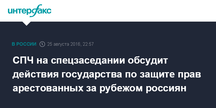 Москва. 25 августа. INTERFAX.RU - Совет по правам человека при президенте РФ после ряда случаев привлечения россиян к ответственности за границей рассмотрит на специальном заседании, как государство защищает права соотечественников за рубежом, сообщил глава СПЧ Михаил Федотов.