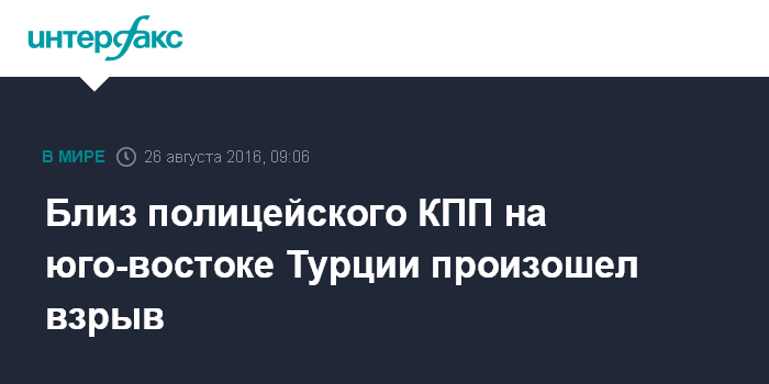 Москва. 26 августа. INTERFAX.RU - Взрыв произошел в пятницу на полицейском КПП в городе Джизре в провинции Ширнак на юго-востоке Турции, сообщает турецкий телеканал NTV.
