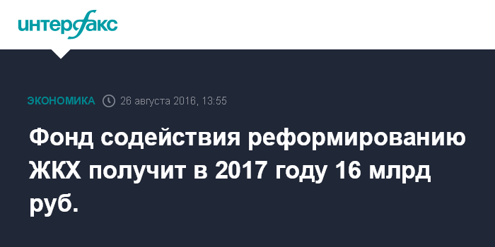 Фонд содействия реформированию ЖКХ получит в 2017 году 16 млрд руб.