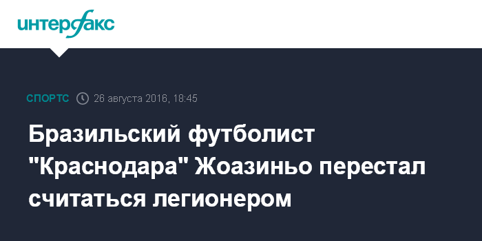 Москва. 26 августа. INTERFAX.RU - Комитет Российского футбольного союза (РФС) по статусу игроков удовлетворил заявление ФК "Краснодар", обратившегося с просьбой не считать бразильского полузащитника Жоазиньо легионером, говорится в сообщении на сайте РФС.