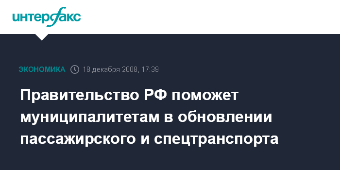 Москва. 18 декабря. INTERFAX.RU - Правительство РФ поможет муниципалитетам в обновлении специального и пассажирского транспорта, заявил глава кабинета министров Владимир Путин.
