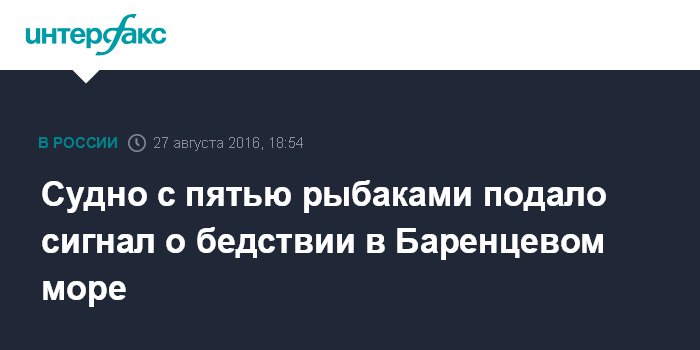 Судно с пятью рыбаками подало сигнал о бедствии в Баренцевом море