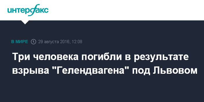 Москва. 29 августа. INTERFAX.RU - Автомобиль взорвался под Львовом, погибли три человека, сообщает местное интернет-издание zaxid.net со ссылкой на Главное управление Нацполиции Украины в области.