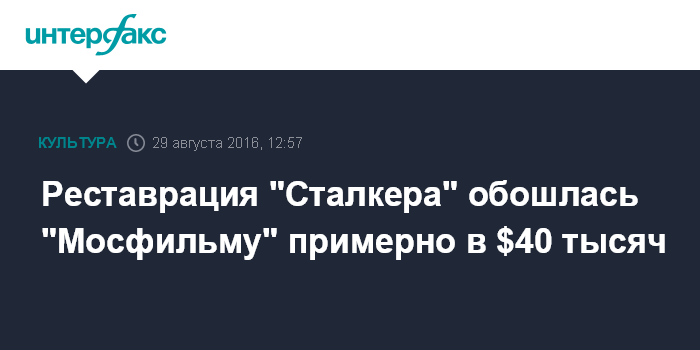Реставрация "Сталкера" обошлась "Мосфильму" примерно в $40 тысяч