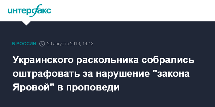 Украинского раскольника собрались оштрафовать за нарушение "закона Яровой" в проповеди