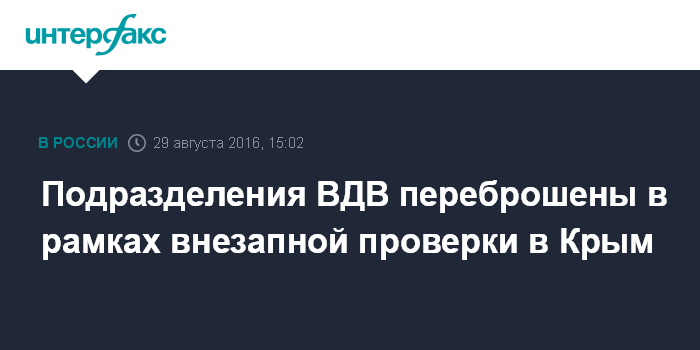 "В рамках внезапной проверки личный состав и военная техника Камышинской отдельной десантно-штурмовой бригады ВДВ двумя воинскими эшелонами были переброшены из Волгоградской области в Республику Крым на один из военных полигонов полуострова вблизи военного аэродрома "Кировский"", - говорится в сообщении, поступившем в "Интерфакс" в понедельник.