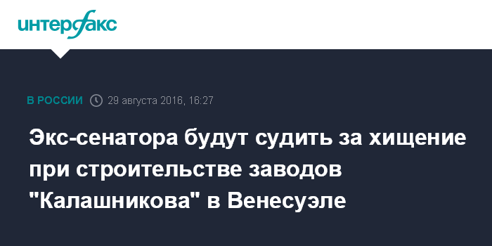 Экс-сенатора будут судить за хищение при строительстве заводов "Калашникова" в Венесуэле