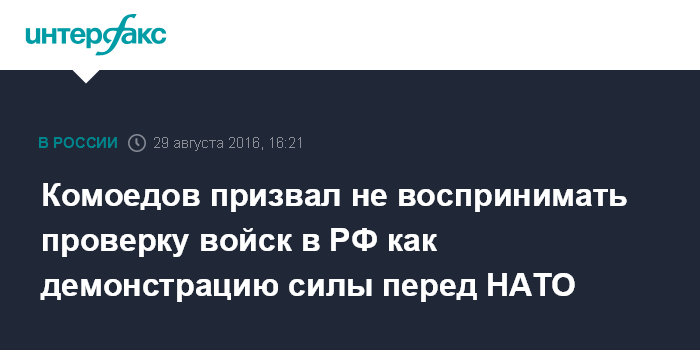 Комоедов призвал не воспринимать проверку войск в РФ как демонстрацию силы перед НАТО
