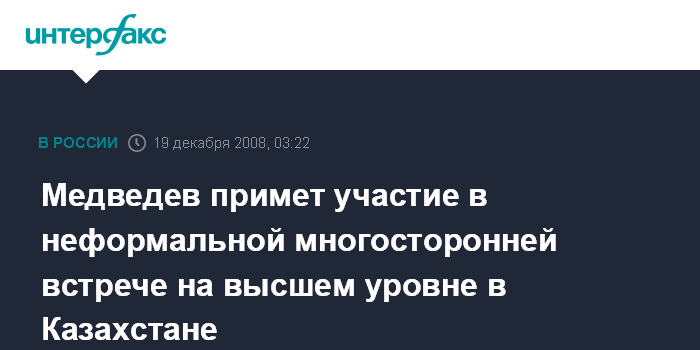 Медведев примет участие в неформальной многосторонней встрече на высшем уровне в Казахстане