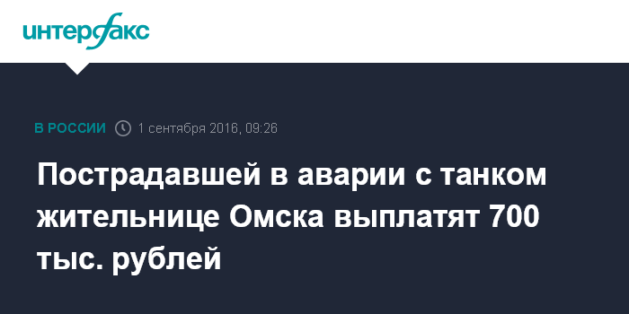 Пострадавшей в аварии с танком жительнице Омска выплатят 700 тыс. рублей