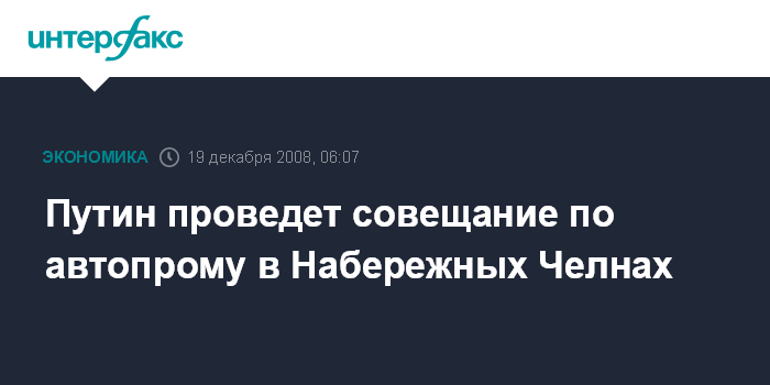 Москва. 19 декабря. ИНТЕРФАКС - Премьер-министр РФ Владимир Путин в пятницу проведет совещание в Набережных Челнах, где расположен крупнейший в России завод по производству грузовых автомобилей "КАМАЗ" (РТС: KMAZ) .