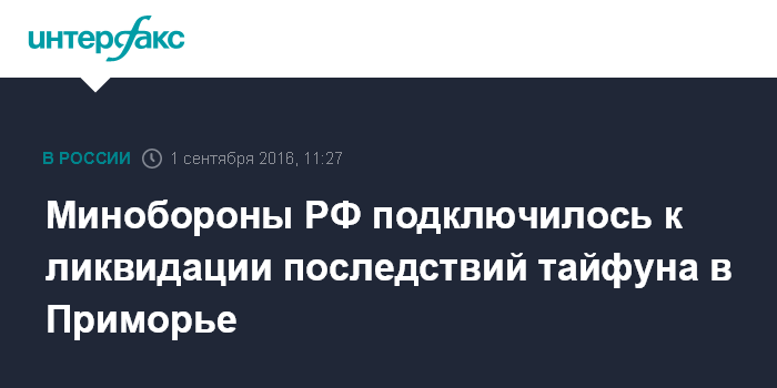 Минобороны РФ подключилось к ликвидации последствий тайфуна в Приморье