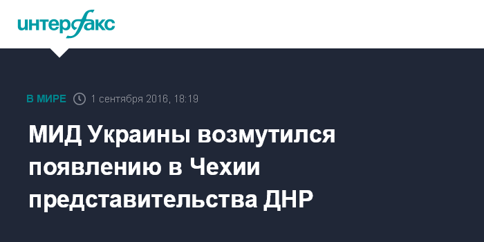 Москва. 1 сентября. INTERFAX.RU - Министерство иностранных дел Украины направило ноту протеста в посольство Чехии в связи с регистрацией в чешском городе Острава представительства самопровозглашенной Донецкой народной республики, сообщила "Интерфаксу" спикер МИД Марьяна Беца.