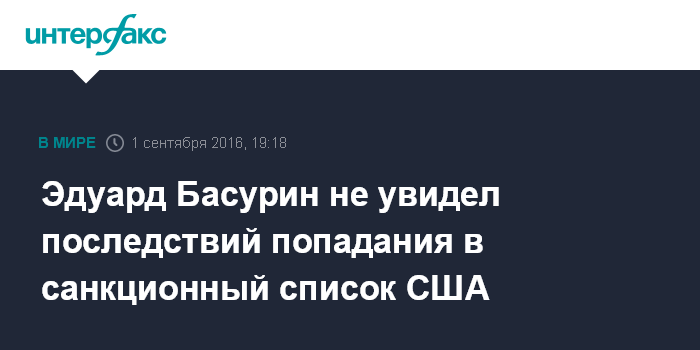 "Я никакого отношения к США не имею, и уж тем более не имею там никаких счетов. Поэтому к чему такая честь, не понимаю", - сказал Басурин "Интерфаксу".